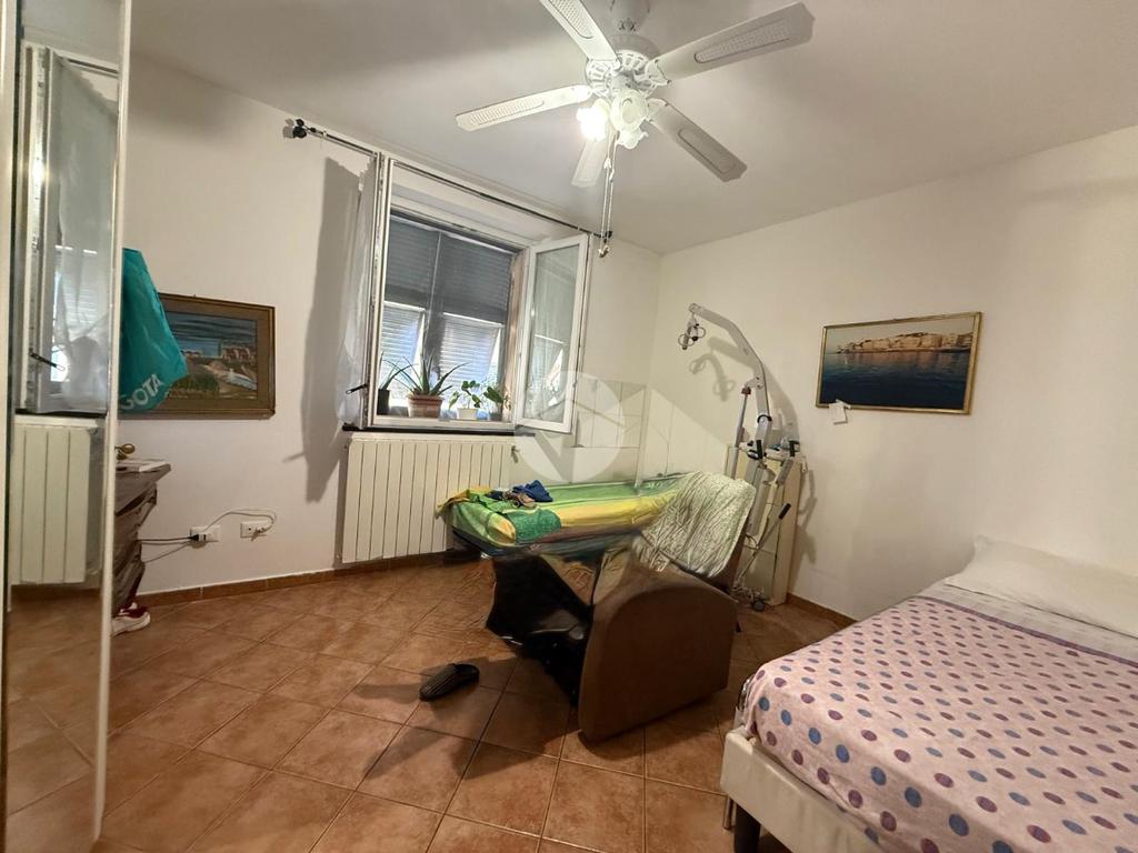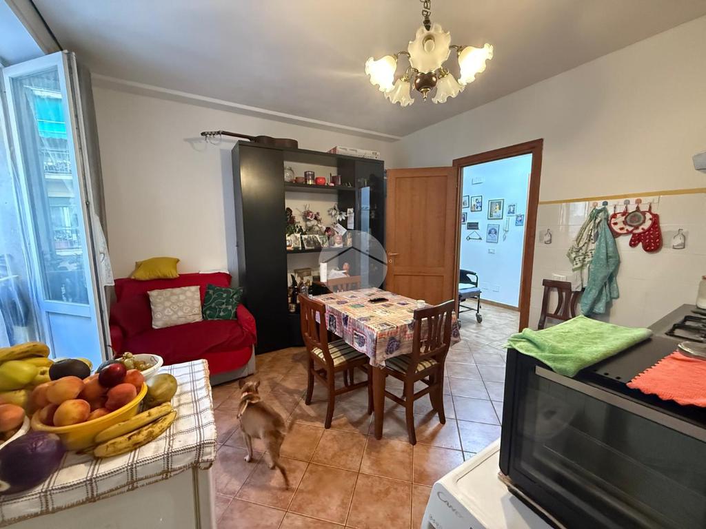 L'immobile, che si presenta in ottimo stato al suo interno, con portoncino blindato infissi in doppio vetro e aria condizionata, è composto da ingresso, cucina abitabile e due camere da letto.