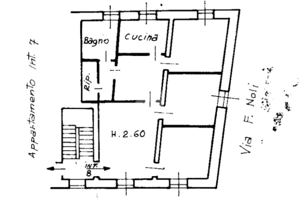 Ingresso in ampio salone, tre camere da letto, disimpegno, cucina abitabile,e bagno con vasca-doccia.
